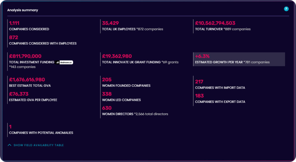 RTICs are The Data City’s alternative to SIC codes. Instead of relying on outdated SIC codes, we use real‑time data from company websites and digital signals to understand what a business actually does. This makes it far easier to identify emerging and fast‑changing sectors like EdTech.