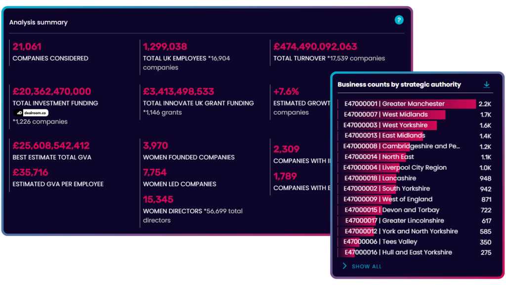 The heart of The Data City’s Industry Engine is Explore – your gateway to over 4.5 million active UK companies.