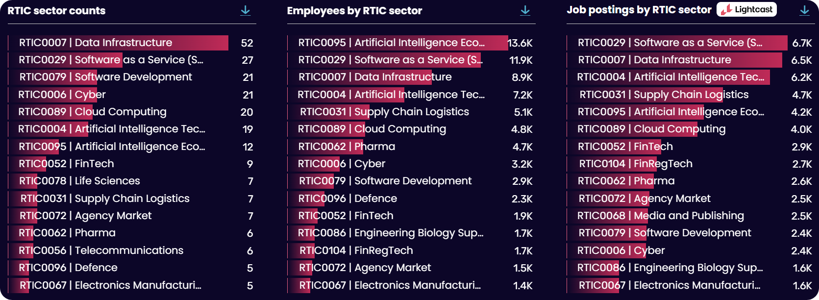 The Data City’s RTICs are critical to this. Unlike traditional SIC codes, RTICs classify companies based on what they are doing now, making it possible to identify emerging sectors and suppliers as the market changes.